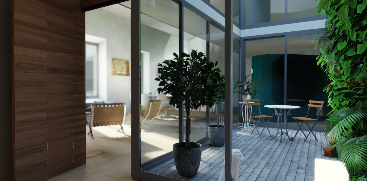 Un premier loft dans la partie ancienne du chai s’ouvre sur un patio, et développe des volumes en duplex. Le mur de la cage d’escalier est végétalisé. L’ensemble est baigné de lumière et traité de manière contemporaine. Le choix des matériaux et leurs mises en œuvre participent à la qualité des lieux et des espaces, ou le bois et la pierre sont omniprésents.