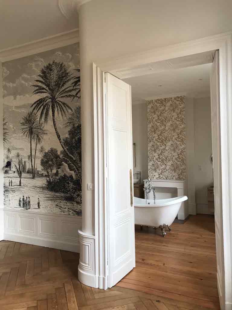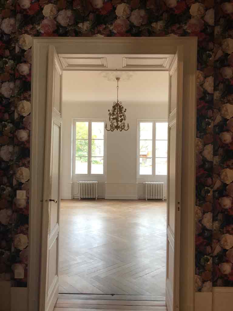 La maison en cœur de ville a été occupée pour un temps par des ateliers de couture. Les prestations anciennes de la maison ont été conservées. Redevenu une maison d’habitation, les fonctions des espaces ont été redéfinis. Les prestations anciennes ont été rénovées et agrémentées de touches de modernité par l’utilisation de couleur et papiers peints contemporains.