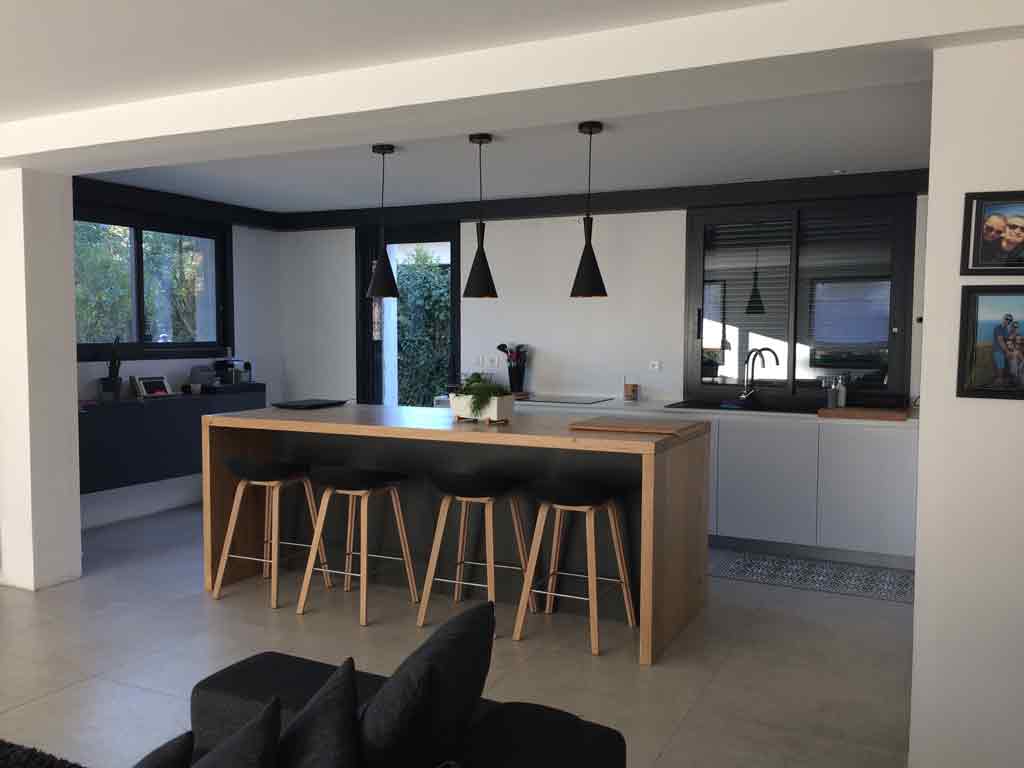 Pour se faire, de nombreuses ouvertures ont été crées. La lumière est omniprésente. Des jeux de transparences et de communication entre les espaces et pièces de la maison agrandissent la sensation d’espace et de bien être dans la maison.